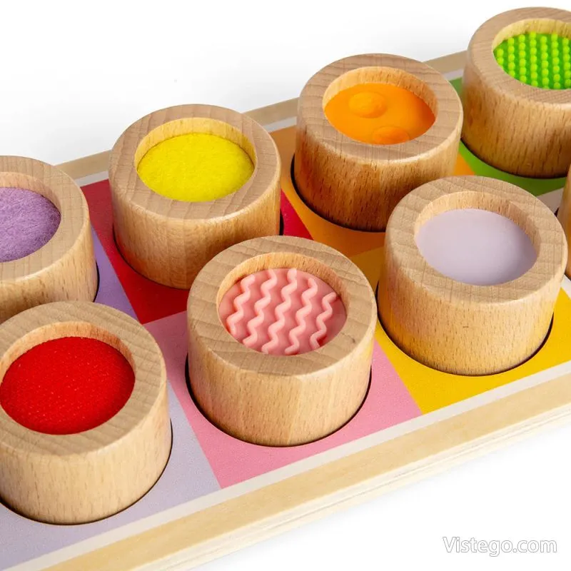 Ако търсите занимание, което съчетава докосване, наблюдение и подреждане, тази сензорна табла предлага ясна и увлекателна игра за най-малките. Комбинацията от различни текстури, съвпадение на цветове и качествена дървена изработка превръща сензорната дъска в практичен избор за ежедневни моменти на откриване.