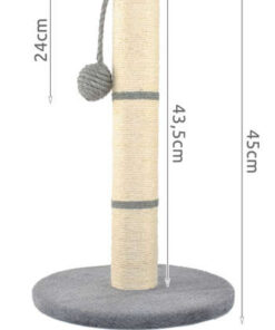Сива котешка драскалка стълб 45 см. Драскалката е изработена от сезал от растителен произход, който се произвежда от влакна от агаве. Той е екологичен и следователно безопасен за нашите домашни любимци. Цялата е завършена с основа, покрита с мек косъм. Характеризира се с висока механична якост и устойчивост на абразия. Прикрепената топка на връв осигурява много радост и забавление. Ако шнурът от сезал е износен, той може да бъде заменен. Основата с голям диаметър гарантира, че чесалото ще стои стабилно и няма да се преобърне, докато котката си играе. Драскалката се отличава с модерен и уютен дизайн, благодарение на който ще изглежда добре във всяка стая. Разгледайте още продукти в категорията “Катерушки за котки” – ТУК!