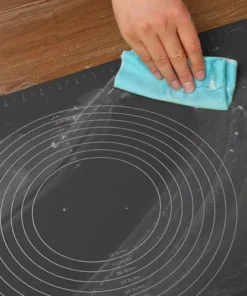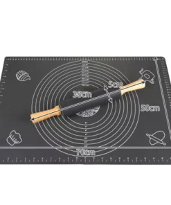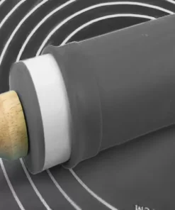 Силиконова дъска за точене с точилка Ruhhy 23760.СИЛИКОНОВ РОЛЕР – предлаганата от нас точилка е аксесоар, изработен от безопасен за здравето материал и одобрен за контакт с храни. С негова помощ можете да приготвите различни видове тесто, което ще се превърне в вкусни кнедли, тестени изделия и сладкиши с мая. Силиконовата точилка не е необходимо да се поръсва с брашно преди употреба. Тестото няма да залепва по него, което значително ще улесни работата и разточването ще се превърне в истинско удоволствие. СИЛИКОНОВА МАСА – Кухненската подложка е изработена от висококачествен силикон, което означава, че се поддържа лесно чиста и е устойчива на скъсване и високи температури. Такава силиконова дъска прилепва добре към масата/плота и не се плъзга по време на месене на тестото. ПРАКТИЧНИ РАЗДЕЛЕНИЯ – силиконовата дъска е с отпечатани скали за дължина и диаметър, благодарение на които се приготвят по-лесно различни видове печива. НЕ САМО ЗА ТОРТА – трябва да добавим, че тази практична кухненска подложка може да се използва не само като дъска за сладкиши, тъй като поради високата си устойчивост на температури от 2000 г. ще работи добре и като поставка за топли съдове, а още повече можете да използвате вместо ръкавица за фурна, за да вземете горещи тенджери или тави за печене.