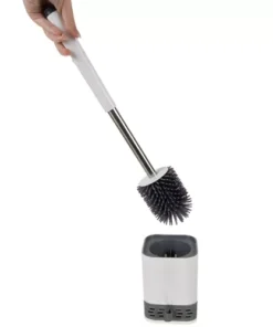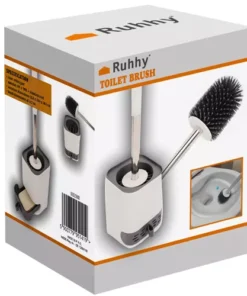 Силиконова четка за баня Ruhhy 23808.ХИГИЕНА + ГЪВКАВА – силиконовата четка за зъби е хигиенична, изплаква се по-добре и не натрупва мръсотия. Благодарение на това меките и гъвкави косъмчета не задържат бактерии. Силиконовата четка за тоалетна осигурява ефективно, бързо и нежно почистване на тоалетната. 2 МЕТОДА НА СЪХРАНЕНИЕ – четката има допълнително лепило, което ви позволява да монтирате четката без пробиване на плочки. Просто залепете за стената и закачете. Друг начин е да го поставите на пода. ЕЛЕГАНТЕН КОНТЕЙНЕР + ЩЕПКИ – Освен практичната функция на четката, тя е и много естетична. Модерният дизайн прави продукта подходящ за повечето бани и е елегантно допълнение. В комплекта има и клещи, скрити в дръжката. Използват се за почистване на четката! УСТОЙЧИВ НА КАПЕНЕ – четката RUHHY има собствено чекмедже против капене. Тази подвижна основа предотвратява капенето на вода върху пода. Благодарение на това вътре няма среда за развитие на вируси и бактерии. Освен това има водопоглъщащ куб.