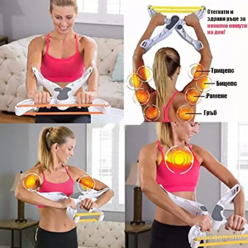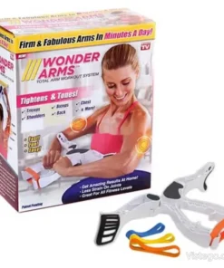 Система за трениране Wonder Arms за удобни домашни упражнения с ленти за съпротивление, ергономичен захват и комфортна опора за ръцете.