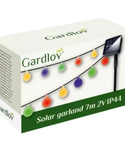 Соларен гирлянд 7м 2V IP44 Gardlov 23865. ПРАКТИЧЕН – соларният гирлянд е забележителен аксесоар, който ще работи перфектно като декоративно и практично осветление за домашна градина или парцел. Слънчевото осветление е екологично чисто, осигурявайки правилния визуален ефект. МНОГОЦВЕТНА СВЕТЛИНА – градинските лампи ще осигурят уникален ефект, а многоцветната светлина едновременно подчертава атмосферата и създава фантастична атмосфера. УСТОЙЧИВОСТ НА НЕБЛАГОПРИЯТНИ ФАКТОРИ – соларните лампи са устойчиви на неблагоприятното въздействие на атмосферните фактори, включително вода. Степента на водоустойчивост на продукта е IP65, осигуряваща ефективна защита срещу капки, падащи под всякакъв ъгъл от всички страни. 50 ТОПКИ В КОМПЛЕКТ С ЕФЕКТ НА МЕХУРЧЕТА – соларният гирлянд има до 50 ярко светещи топки в комплекта, като разстоянието между отделните топки е 11см. Топките са с цвят на пристрастия. Когато свети, имате ефекта на светеща топка! Разгледайте още продукти в категорията “Соларни лампи” – ТУК!