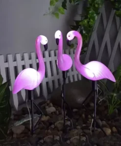 Соларна градинска лампа Фламинго Gardlov. ВКЛЮЧЕНИ 3 ФЛАМИНГА – лампата е свързана една с друга и със соларния панел. Във всяко фламинго има 2 диода, осветяващи фигурката (в човката и в корема). Такава соларна лампа е чудесно решение за всяка градина. Осветлението придава чар и подчертава уникалния характер на градината. Соларните лампи са екологични, тъй като не изискват свързване към източник на захранване и не отделят вредни парникови газове или отпадъци. Освен това са практични, защото могат лесно да се местят и поставят навсякъде, без да се налага да дърпате кабели. Соларен панел и батерия осигуряват захранване директно от слънчева енергия. Това позволява използването на устройството без поддръжка. Осветлението се включва автоматично след стъмняване. Лампите не изискват допълнителен източник на енергия, такова решение е икономично и икономично. Светещите соларни лампи са устойчиви на неблагоприятни атмосферни влияния, включително вода. Водоустойчивостта на продукта е IP44, осигуряваща ефективна защита срещу водни пръски от всяка посока.Разгледайте още продукти в категорията “Соларни лампи” – ТУК!