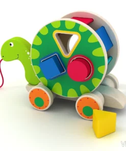 Сортер костенурка – сортер е практична играчка, която съчетава движение и подреждане в едно занимание, така че детето да играе активно у дома или навън. Костенурката се търкаля на колелца и може да се дърпа с връвчица, което я превръща в забавен спътник за разходки и игри, при които малчуганът се движи и изследва.
