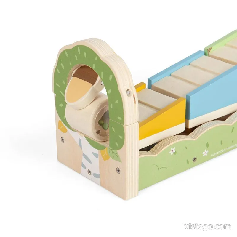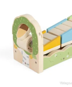 Тази играчка комбинира табла за сортиране с рампа и елементи, които се движат по нея. Детето поставя форми на правилните места и сглобява рампата, след което наблюдава как тръбата и топчетата се търкалят и създават ясна причинно-следствена връзка. Сортерът с рампа е замислен като развиваща игра за най-малките, при която действията са прости, но резултатът е видим и мотивиращ.