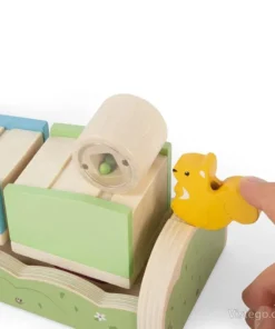 Сортер с рампа превръща подреждането и движението в увлекателна игра, която задържа вниманието и насърчава детето да пробва отново и отново, докато открие правилното решение. Вариантът „Катеричка“ добавя забавен елемент с издърпване и пускане, който прави заниманието още по-интуитивно и интересно.