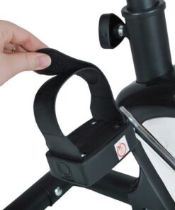 Стационарен велосипед механичен тренажор R7625. Сензорите се поставят на дръжките на велосипеда. По време на тренировка е много важно постоянно да следите пулса си. Най-добре е, когато е между 110 и 150. Велообучението трябва да започне с кратки маршрути, като постепенно се увеличава разстоянието и темпото. След превишаване на максималната сърдечна честота, млечната киселина започва да се натрупва в тялото, което според нас причинява болки в мускулите, обща слабост. Бордовият компютър ще показва и други параметри по време на тренировка, като например: време за упражнения, изминато разстояние, изгорени калории, скорост. Има и функция SCAN, която ви позволява да преглеждате стойности на различни интервали. Под волана, точно на една ръка разстояние, има копче за промяна на съпротивлението. По време на тренировка можете лесно да регулирате тежестта според възможностите си. Велосипедът работи двупосочно, работата му е тиха, така че не нарушава спокойствието на останалите членове на домакинството. Велосипедът има регулируеми дръжки, които стабилизират и шокират крака, както и педали от нехлъзгащ се материал. Стабилната опора значително влияе върху ефективното изпълнение на тренировката, но и върху нейния комфорт. В допълнение, предната и задната рама са оборудвани с нехлъзгащи стабилизатори за повишаване на безопасността. Важен елемент по време на упражненията е подходящото регулиране на оборудването спрямо трениращия. Височината се регулира в 6 степени, 75/72/69 / 66,5 / 63 / 61 см – можете лесно да регулирате нивото според вашия ръст. Колелото може да се използва както от възрастни, така и от деца. Разгледайте още продукти в категорията “Фитнес уреди за дома” – ТУК