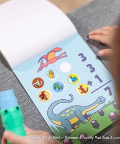 Стикери за печат Динозавър Melissa & Doug. Melissa & Doug Sticker WOW!® представя съвсем нов начин за игра със стикери! Поставете удобния стакер от 300 разнообразни стикера с праисторически динозаври във всеки Sticker WOW!® Sticker Stamper касета и започнете да печатате навсякъде и по всяко време! Със 100 уникални дизайна във всяка купчина стикери, всеки отпечатан стикер е наистина изненада. Стикерите за презареждане на Sticker WOW!® се отстраняват лесно и са перфектни за творчески проекти по изкуство и занаяти. Стикерите за динозаври се прибавят естествено към стикерната колекция с Olive the Dinosaur от Sticker WOW!®, но са съвместими с всички симпатични и колекционерски стикерни щампи на Sticker WOW!® (стикерът не е включен в комплекта). Sticker WOW!® стимулира фините двигателни умения, насърчава творческата игра и предлага удовлетворително, забавно развлечение! Презаредете вашите стикери Melissa & Doug Sticker WOW!® Olive the Dinosaur (не са включени) с 300 динозаври и праисторически тематични стикери за презареждане и започнете да печатате навсякъде и по всяко време. Включва 1 купчина стикери от 300 стикера за презареждане на Sticker WOW!® колекционерски стикер за щампа (съвместим с всички Sticker WOW!® стикерни щампи); просто поставете го в касетата за печат на стикери и започнете да печатате. Със 100 уникални дизайна на праисторическа тематика във всяка купчина стикери, всеки отпечатан стикер е наистина изненада. Стикерите Sticker WOW!® не се използват повторно, но се отстраняват лесно, ако е необходимо, като правят Sticker WOW!® отличен безпроблемен спътник за пътувания, инструмент за изработка, играчка и колекционерска игра; с патент в очакване. Идеален подарък за момичета и момчета на възраст от 3 до 7 години за практична, забавна игра без екран. Не са необходими батерии. Разгледайте още продукти в категорията “Творчески комплекти” – ТУК!