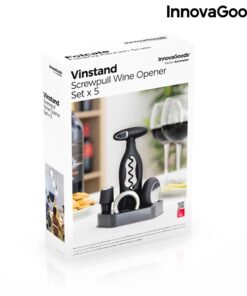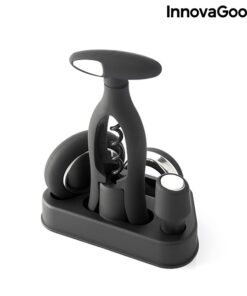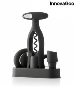 Стилен комплект за вино InnovaGoods. Пълен, качествен винен комплект с модерен и елегантен дизайн, който би бил идеален подарък за любителите на виното. Съдържа редица аксесоари за вино и поставка за поднос, върху която да ги поставите, което улеснява транспортирането и съхранението.