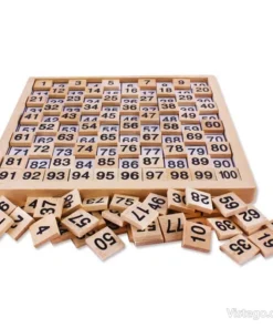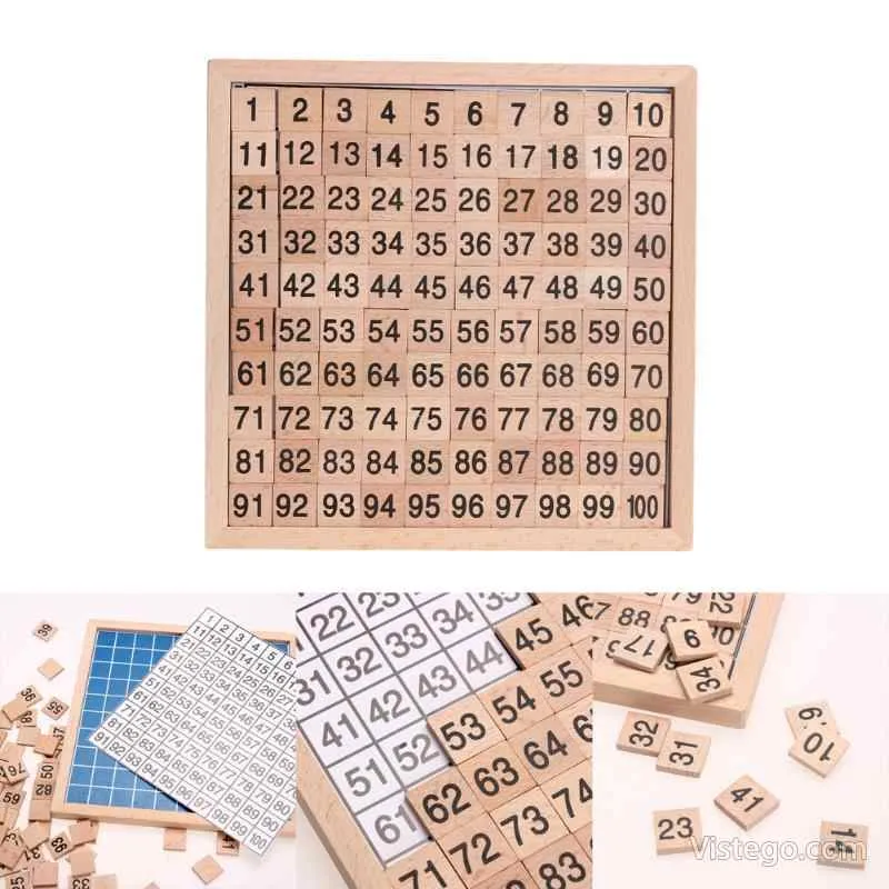 Стотична дъска за подреждане на числата от 1 до 100 с плочки, торбичка и таблица. Подходяща за упражнения у дома и за деца над 3 г.