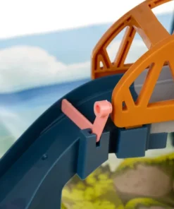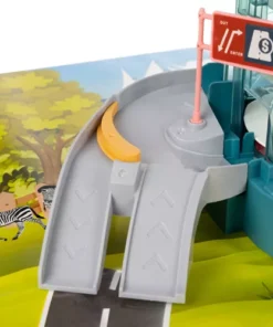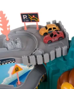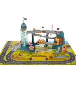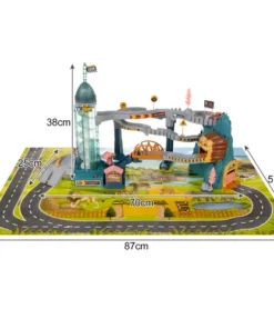 Състезателна писта лъвска бърлога 23130. ИНТЕРАКТИВНА СЪСТЕЗАТЕЛНА ПИСТА – е проектирана да осигури вълнуващо и динамично изживяване при игра с коли играчки. Пътни знаци, стратегически разположени по цялата дължина на пистата, предупреждават и информират за всякакви трудности/препятствия, срещани по маршрута. Тунелът позволява на състезателите да изминат част от трасето при пълна тъмнина. Следващото препятствие е блокада точно след моста. Благодарение на нея можете да контролирате трафика на пункта за събиране на пътни такси, преди да влезете в кулата с въртяща се писта, която транспортира автомобилите до горното ниво. Тук има и магазин за закуски. На горното ниво на пистата има и паркинг за три коли. Благодарение на вдлъбнатините в централната част на паркомястото, автомобилите имат стабилно място за паркиране и гаранция, че няма да се движат сами. Втората, по-голяма и подвижна блокада може да регулира изхода от пистата или да я зацикли, така че да продължи. В скалата има място – закрит паркинг за две коли. Комплектът включва набор от стикери, които ще дадат възможност на детето креативно да декорира и маркира пистата и нейните елементи. КУЛА СЪС СПИРАЛЕН ЛИФТ – входът и изходът от състезателната писта се намират до кулата с въртяща се писта, която се върти спираловидно нагоре, извеждайки колите на горното ниво. Благодарение на прозрачните стени можем да видим колите, които отиват до самия връх. Вдлъбнатини по повърхността на асансьора, кабините не се изплъзват и влизат стабилно. След включване на пистата, светлината започва да мига и блокада „в пътя“ преди влизане в кулата се срутва и позволява на колите да се качат на лифта с безопасно темпо. Което гарантира влизане без сблъсък. Когато е включен, куполът на кулата се върти в кръг, осветявайки пистата, а придружаващата музика е приятна за ухото. КОМПЛЕКТ АВТОМОБИЛИ – пистата се предлага с комплект от 4 автомобила, в приятни пастелни цветове. Всяка играчка кола е изработена от висококачествена пластмаса с внимание към всеки детайл. Шасито на колите има допълнително метално колело , което осигурява стабилизация при спиране на паркинг или влизане в асансьор . ВКЛЮЧЕНА ПОСТЕЛКА – за да бъде състезателната писта по-реалистична, в комплекта е включена и постелка от плътно и висококачествено фолио. Ярки цветове, красиви пейзажи и образователен уличен модел са допълнителни предимства, които ще направят забавлението още по-вълнуващо. Това ще помогне за развитието на интереса на всяко дете към автомобилите. Разгледайте още от категорията “Дървени колички и камиони” ТУК!