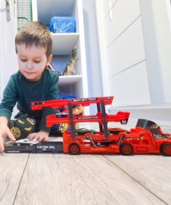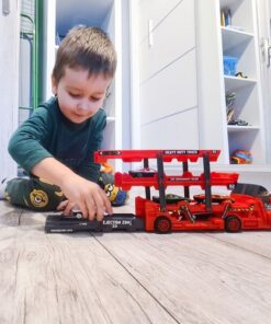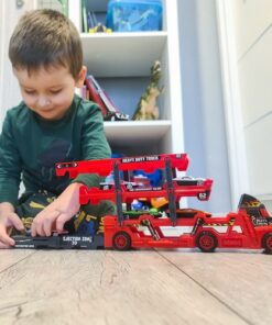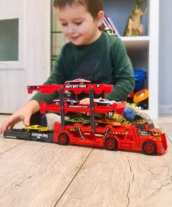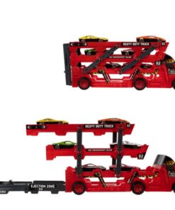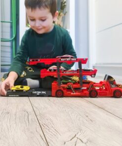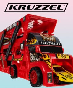 ТИР комплект с 6 коли Kruzzel 22515. ПУСКОВА УСТАНОВКА – камионът е с автомобилна пускова установка. Просто разгънете задната част на ремаркето и това е! За да пуснете колата, трябва да опънете стърчащия елемент на пистата, да поставите колата пред нея, да натиснете бутона в края на пистата и да гледате как колата бяга! Пистата минава през най-ниското ниво на ремаркето и излиза при капака на камиона. Това е идеалният механизъм за получаване на предимство в луда надпревара. LAWETA + 6 AUT – комплектът се състои от камион и 6 коли. Тегличът има функция за сгъване, благодарение на която можете лесно да извадите колите. Играчката е изработена много внимателно, като са пресъздадени всички детайли. Изглежда реалистично, насърчавайки детето да играе. 3 ХОРИЗОНТАЛНО РЕМАРКЕ – ремаркето има 3 нива, предназначени за безопасно транспортиране и съхранение на коли играчки, благодарение на които вашето дете няма да загуби нито една ценна кола и ще може да ги транспортира по състезателни писти по целия свят. ИЗДЪРЖЛИВА – играчката е изработена от висококачествена пластмаса и метал, благодарение на което е изключително издръжлива. Ще служи на вашето дете дълги години. Разгледайте още от категорията “Дървени колички и камиони” ТУК!