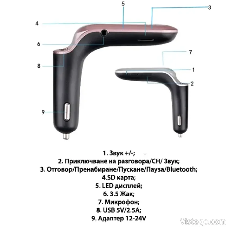Този автомобилен трансмитер работи като FM предавател, който подава звук към радиото на автомобила и позволява да прехвърлите музиката от телефона или от носител, който използвате. Вградените функции за Bluetooth hands-free улесняват приемането и приключването на разговори, а управлението на възпроизвеждането ви дава контрол върху пауза, избор на песен и повторно набиране. Ако търсите трансмитер за автомобил с изчистен подход и практична употреба, Car S7 е ориентиран именно към това.