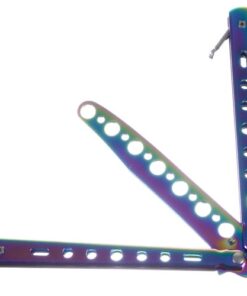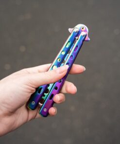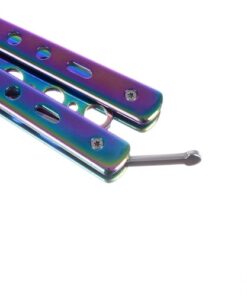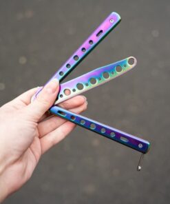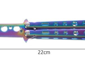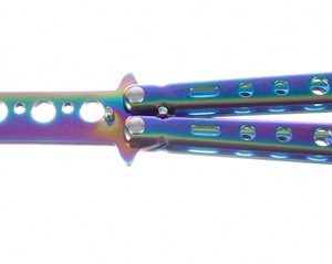 Тренировъчен нож пеперуда – цветен Malatec.Този тренировъчен нож тип пеперуда в цветен металик е чудесен за тренировки в реалния живот, без да се притеснявате, че ще нараните ръцете си. Препоръчва се за всеки, който обича ножовете тип пеперуда. За обучение без риск от порязване. Има вграден стопер против отваряне. Ще го отключите само като вдигнете предпазителя. Стоперът ще предотврати неочаквано отваряне. Металната дръжка е удобна и с класическа форма за ножове пеперуда. Изработен изцяло от метал, подходящо тежък и балансиран. Лесно се сгъва и разгъва. Ножът пеперуда няма остро острие. Ножът е безопасен, защото е с тъпо (заоблено) острие. Острието не е остро и поради дизайна си не може да се наточи.