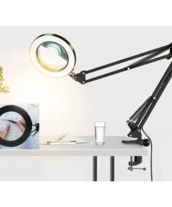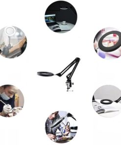 Увеличителна лупа с лед осветление Izoxis 22691. ЗАДНА КОНСТРУКЦИЯ – LED лампата е с лек и компактен дизайн, което я прави лесна за закрепване към плот, ръб на козметично легло или шкаф с помощта на солиден метален държач, включен в комплекта. Скобата C с позициониращ винт ще осигури стабилност на лампата лупа. Благодарение на издръжливите пружини, монтирани на ставите, той е лесен за маневриране. Стабилизацията в избраната позиция ще бъде осигурена от висококачествени бътерфлай винтове. Черният корпус добавя елегантност и изтънченост. ЕНЕРГОСПЕСТЯВАЩО ОСВЕТЛЕНИЕ – тази лампа с лупа е оборудвана с енергоспестяваща, вградена, кръгла LED лампа, която осигурява оптимално осветление и по-добра видимост. Светлината е стратегически разположена около увеличителната леща, осигурявайки равномерно и ярко осветление. Кръглата LED лампа има до 10 нива на интензитет на светлината. Друго предимство е възможността за избор на цвят на осветлението от три налични – топла, ярка или неутрална светлина. Тази конфигурация на осветлението имитира дневна светлина. СТЪКЛЕНА ЛЕЩА – лупата е изработена от висококачествено оптично стъкло, което осигурява увеличение без изкривявания и кристално чисто изображение. Благодарение на факта, че е стъклена леща, тя е устойчива на драскотини и микродраскотини по време на пране. Освен това такива лещи са по-електростатични! USB POWER – USB захранвана лампа, осигурява удобство и гъвкавост. Просто свържете към USB порт на вашия компютър, лаптоп или стенен адаптер и сте готови. Това елиминира необходимостта от използване на батерии или не забравяйте да заредите батерията. Въпреки това, лед лупа лампа осигурява надежден източник на светлина за постоянно осветление. Кабелът съдържа контролер с ключ за включване/изключване на лампата, бутон за промяна на цвета на светлината и два бутона (+ и -) за увеличаване или намаляване на интензитета на светлината. Кръглата LED лампа с лупа на IZOXIS е комбинация от модерен стил и функционалност. Лампата е с елегантен и компактен дизайн. Това е визуално атрактивен инструмент, който си струва да имате под ръка. Кръглата LED лампа с увеличение, независимо дали е предназначена за лична употреба или за професионален гримьор или козметик, ще бъде прекрасен и обмислен подарък за всеки. Лупата съчетава практичност с елегантност, което я прави ценен инструмент за всеки, който се нуждае от подобрена видимост и прецизност.Разгледайте още продукти в категорията “Аксесоари за кухня” – ТУК
