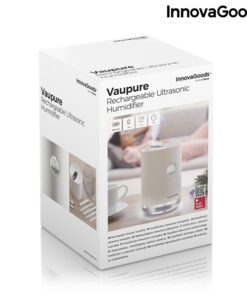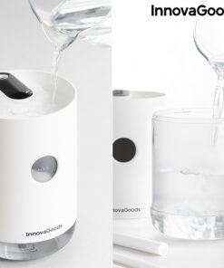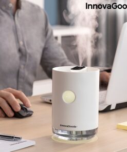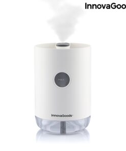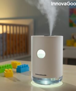 Ултразвуков овлажнител за въздух InnovaGoods. Акумулаторен ултразвуков овлажнител със студена мъгла, който регулира нивото на влажност в атмосферата, поддържа правилното дишане, подобрява качеството на съня и хидратацията на кожата. Тъй като е ултразвуков, той е много по-тих и тъй като не работи с горещ въздух, е по-безопасен за използване. Неговият преносим безжичен дизайн го прави лесен за използване и поставяне навсякъде. Изключва се автоматично след като е бил включен в продължение на 9 часа или когато няма достатъчно вода. Освен това може да се пълни през отвора в резервоара или отгоре, което го прави много по-удобен. Идеален за спални, офиси, дневни и др. Препоръчва се използването на дестилирана вода, тъй като не се добавят аромати или ароматни масла.