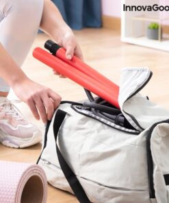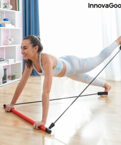 Фитнес уред с резистентни ластици InnovaGoods. Фитнес щанга с еластични резистентни ленти и ръководство за упражнения, което ви позволява да правите пълна тренировка с голямо разнообразие от упражнения и разтягания за работа на 4-те основни мускулни групи (торс, ръце, крака, гръб). Поради своята гъвкавост, може да се използва в много позиции (изправено, легнало…) и за различни спортни дисциплини, включително фитнес, йога, пилатес и др. Идеален за укрепване и тонизиране на мускулите на тялото (корем, ръце, крака, глутеусите, гърдите, кръста, раменете, гърба и др.). Неговият лек, разглобяем и преносим дизайн го прави лесен за транспортиране и съхранение, като заема малко място, което е огромно предимство за поддържане на форма без необходимост от натрупване на обемисти фитнес оборудване. Тази модерна, многофункционална тренировъчна лента с тензори е ергономична, унисекс и подходяща за всички нива (от начинаещи до професионалисти). В допълнение, той е много здрав благодарение на вътрешната метална тръба и осигурява стабилно захващане със своето нехлъзгащо покритие. Включва 2 еластични ленти, 2 дръжки за захващане за ръце или крака и високо ниво на устойчивост (до 31,75 kg / 70 lb). Идеален за упражнения у дома, въпреки че може да се използва и на открито. Разгледайте още продукти в категорията “Ластици за тренировка” – ТУК!