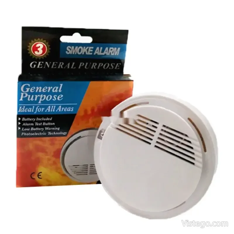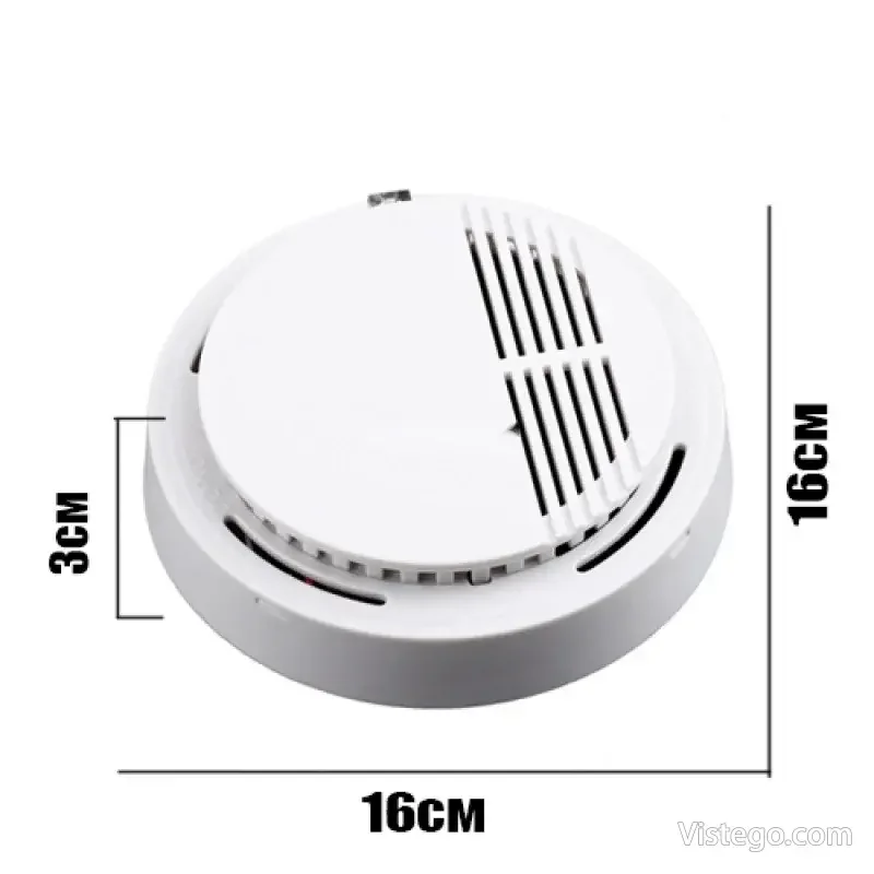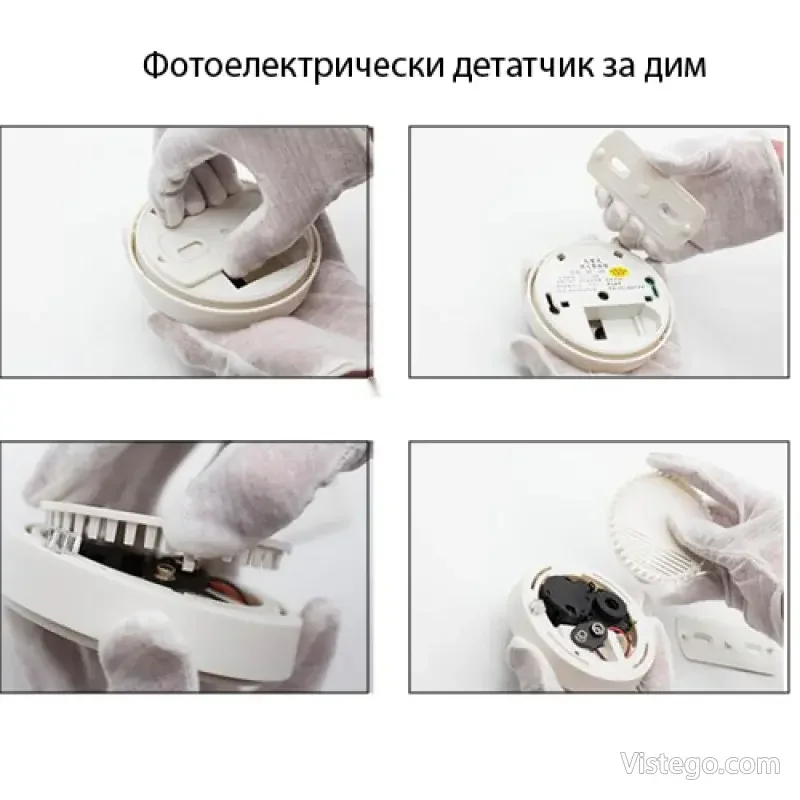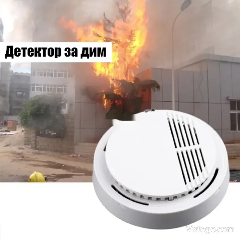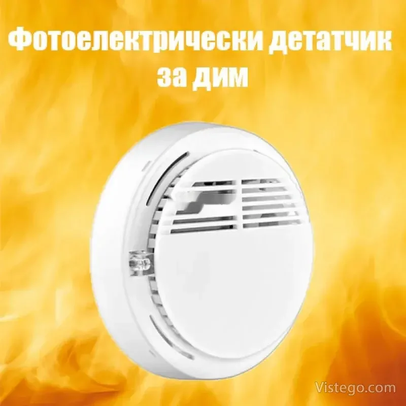 Датчик за дим с фотоелектричен принцип, светлинно-звукова аларма, ръчно тестване и автоматично нулиране. Подходящ за вътрешни помещения.