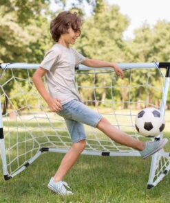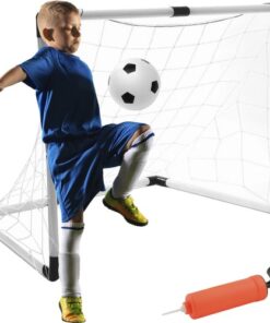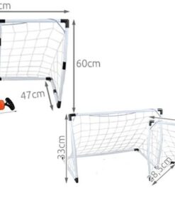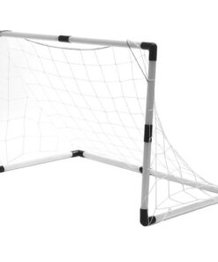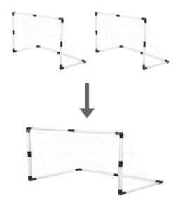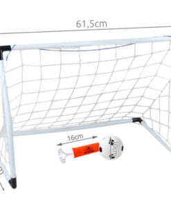 Футболни врати с мрежа и топка – за детска игра. Вратите могат да се използват както у дома, така и в задния двор, можете да създадете своя собствена детска площадка. Портите са водоустойчиви, което ни позволява да ги оставяме пред къщата/в градината за дълго време без ежедневно опаковане. Комплектът силно развива двигателните умения и се грижи за състоянието на детето, като в същото време го насърчава както да играе с връстниците си, така и да се забавлява със семейството. Достатъчно е тръбичките да се свържат със специални съединители и да се поставят върху мрежата и след това е готова за употреба. Комплектът включва помпа и лека топка, подходяща за деца от 3 годишна възраст. Включва: 2 мрежи, 14 съединители, 12 тръби, 1 помпа, 1 топка.