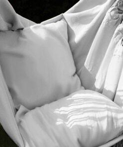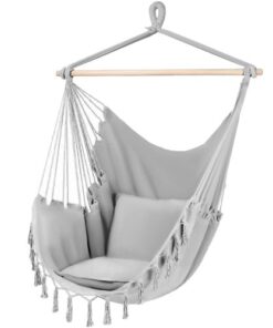 Хамак бразилски стол в сиво Gardlov 20937. Този изключително удобен и функционален хамак – бразилски стол, ще ви позволи да релаксирате в удобни условия. Ще бъде перфектен в градината, на терасата, балкона и дори в стаята! Можете да го използвате по време на сиеста след вечеря, кратка дрямка или почивка с книга или списание. 65% памук осигурява правилна вентилация, което се отразява на комфорта при използване на висящ стол дори в горещи дни. 35% полиестерна добавка е отговорна за здравината на седалката. Твърдото монтажно колело е свързано с издръжливи въжета, равномерно разпределени по страните на хамака чрез дървена напречна греда. Тази конструкция прави всичко лесно за окачване и хамакът е добре балансиран и стабилен. За да ви осигури максимален комфорт по време на почивка, комплектът включва две удобни възглавници, които ще осигурят мека опора по време на почивка. Благодарение на това, че хамакът има дървена греда, позволява удобна поза по време на почивка. Можете свободно да четете в него и да наблюдавате околността. Перфектен за стационарен монтаж в градината, на терасата или в стаята. Разгледайте още продукти в категорията “Домашни потреби” – ТУК!