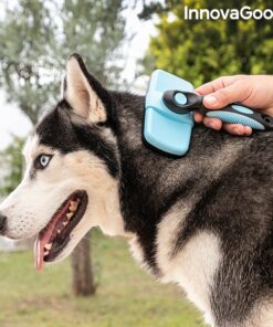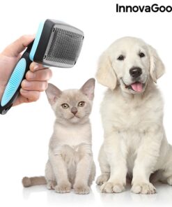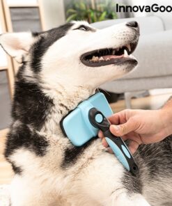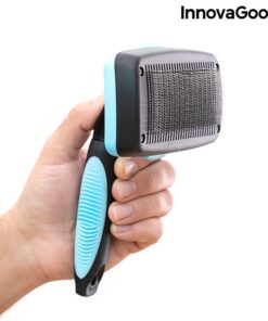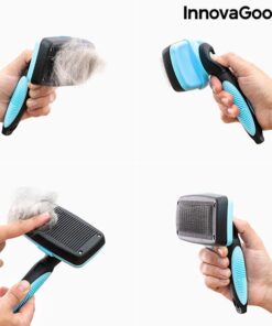 Четка за домашни любимци InnovaGoods. Иновативен дизайн на прибиращи се влакна, който улеснява почистването както на животното, така и на четката. Оптимизира ефективността и осигурява нежен масаж. Тази голяма четка позволява по-бързо и по-пъргаво подстригване. Твърдите косми от неръждаема стомана осигуряват по-ефективно поддържане, като същевременно нежно масажират. Ергономичната дръжка позволява по-добър захват, за да се използва с пълен комфорт. Използва се много лесно: след като изчеткате домашния любимец, за да премахнете лесно задържаните в четката косми, просто натиснете бутона, който прибира космите, оставяйки ги вътре в четката. Идеален за животни със средна и дълга козина.