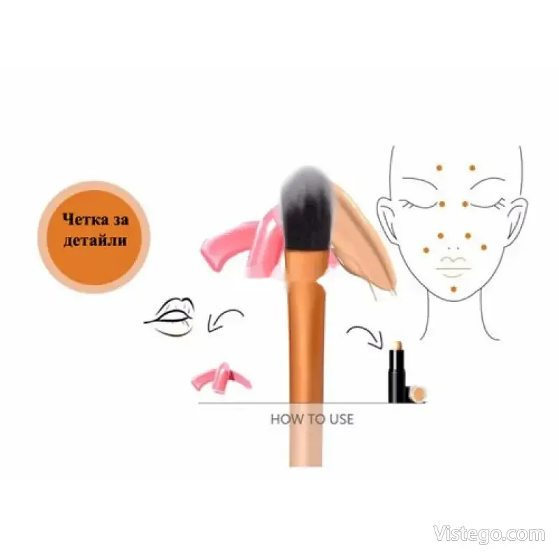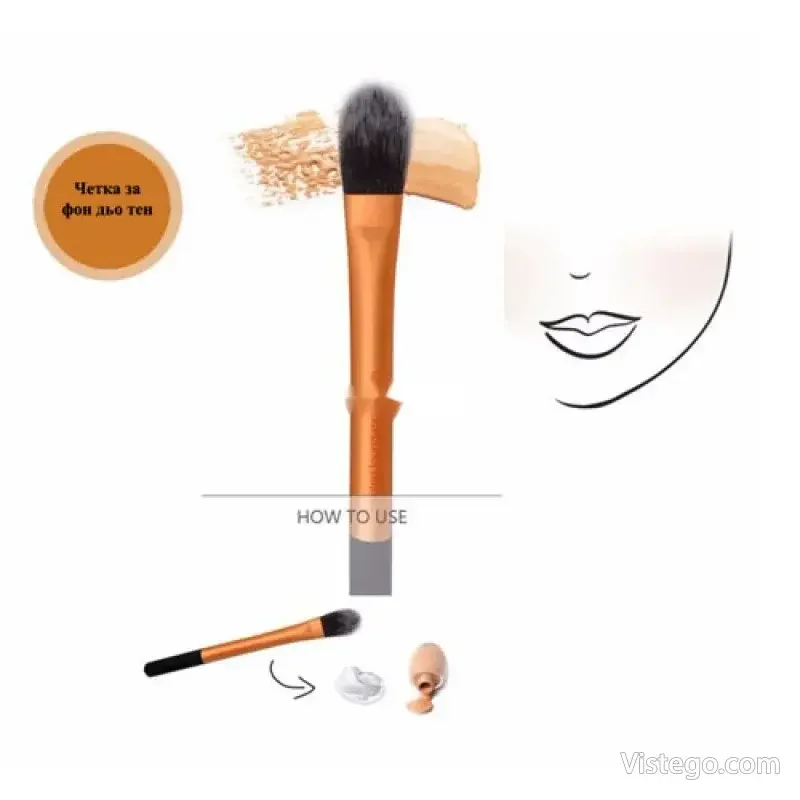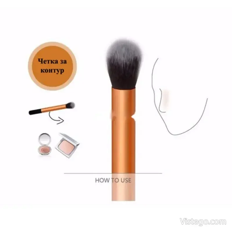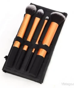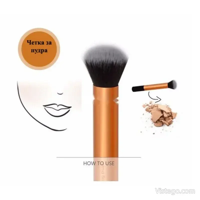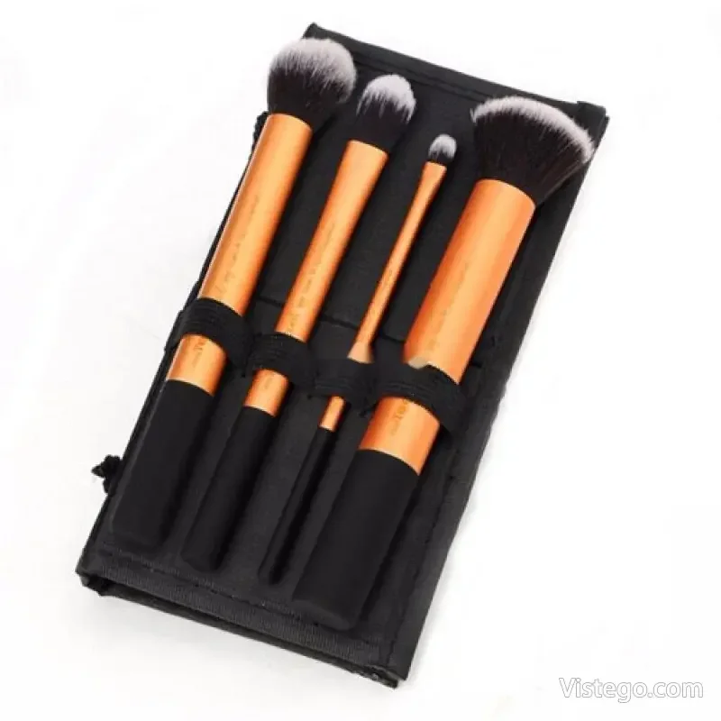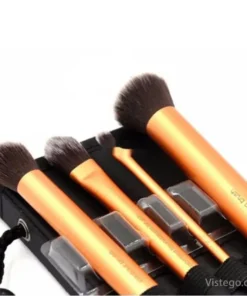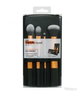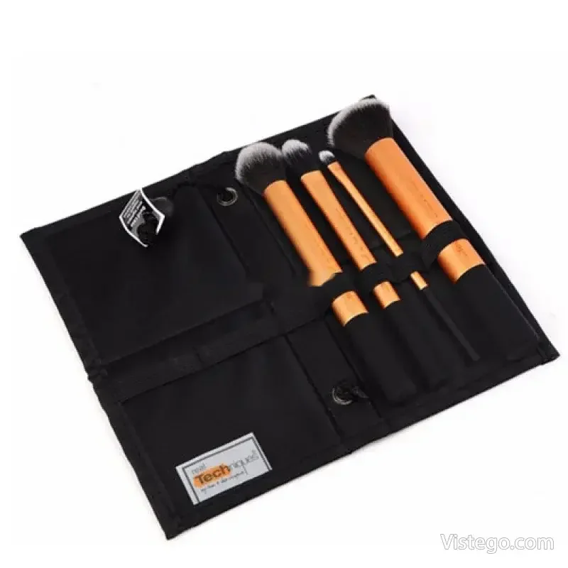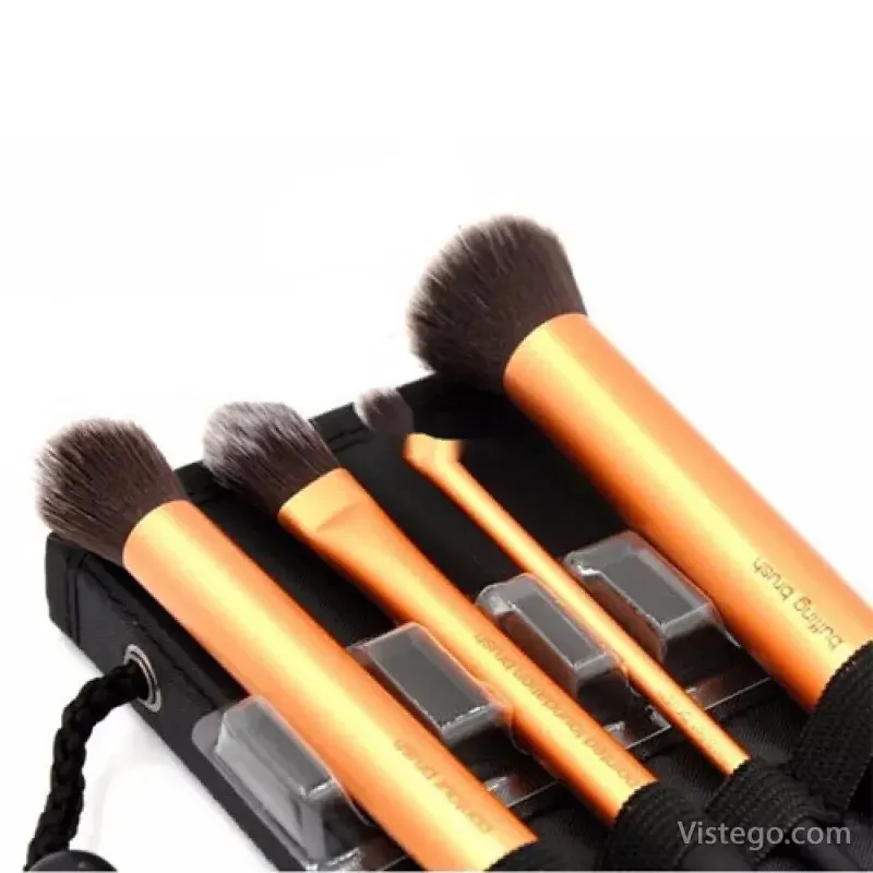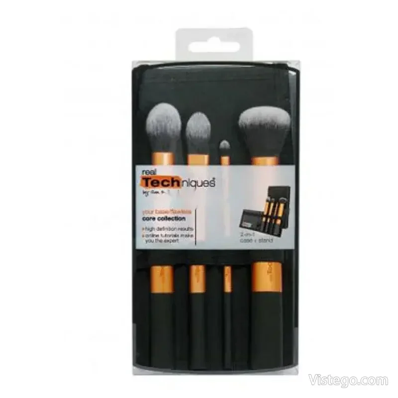 Четки за грим Real Techniques с калъф-стойка и четири пълноразмерни четки за база, корекции, контур и пудра у дома и в движение.