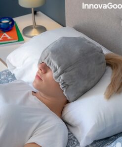 Шапка против мигрена и главоболие InnovaGoods. Ергономична гел шапка за облекчаване на мигрена, напрежение и главоболие. Осигурява дълбока релаксация, облекчение и благополучие благодарение на своите охлаждащи и загряващи ефекти. Дизайнът с широко покритие позволява да се покрият очите, като по този начин се предотвратява смущението от светлина. Освен това е мека и приятна на усещане, така че няма да увреди или протрие кожата. Шапката съдържа 4 извличащи се торбички с гел, които могат да се нагряват в микровълнова фурна за постигане на затоплящ ефект или да се поставят в хладилник/фризер за охлаждащ ефект. Тази удобна многопозиционна шапка против мигрена е удобна, лесна за използване, гъвкава и адаптивна, тъй като има шнур, с който можете да регулирате размера. Когато чантите се извадят от вътрешната страна на шапката, тя се сгъва лесно и почти не заема място при транспортиране или съхранение. Може лесно да се пере ръчно (без торбичките с гел). Не препоръчваме използването по време на сън.