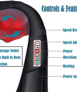 Шиацу масажор яка за врат и гръб 4D в черен цвят