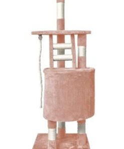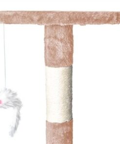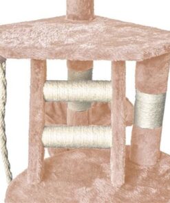 Kатерушка за котки Бежово котешко дърво 118 см. Подовете на котешката драскалка са облицовани с изключително мека козина, която гарантира комфортна почивка с мъркане на заден план. Основното предимство на дървото е уютна къща. Допълнителна опция за почивка е леговище на 3-то ниво на чесалото. Котето ще може да си почива на воля. 5 нива на наблюдение за задоволяване на любопитството на котката. В случай на скука можете също да потърсите мишката, инсталирана _ на ластика, разположена на 5-ия етаж на стълба за драскане – можете да ги хванете и атакувате. Допълнително на 4-то ниво на чесалото има въже, по което котката може да се катери. Котешката драскалка ще се впише перфектно във всеки интериор – независимо от стила или аксесоарите. Дървото е подходящо за котки от различни породи. Разгледайте още продукти в категорията “Катерушки за котки” – ТУК!