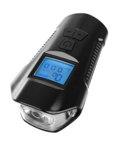 LED лампа за велосипед с брояч Trizand. Предно-задната велосипедна лампа ще осигури на велосипедиста много добра осветеност на пътя отпред и видимост назад. Устройството обаче има и други функции, включително звуков сигнал и предавател за скоростомер, който е монтиран на спиците. Благодарение на предавателя на скоростомера е възможно да се провери цялото изминато разстояние (ODO), средна скорост по маршрута (AVS), изминато разстояние в текущото пътуване (DST), максимална скорост (MXS) и време, през което разстоянието е изминато (TM). Предната LED светлина за велосипед има до четири различни режима на светене, между които можете лесно да превключвате. Можете да избирате от: силна светлина, стробоскоп, слаба светлина и жълта светлина. Задната светлина също има 4 режима на светене: постоянна, мигаща нагоре и надолу, мигаща и бързо мигаща. Многофункционалната велосипедна светлина има водоустойчив дизайн, така че ще бъде полезна и при неблагоприятно време, като мъгла, ръмеж или дъжд. Разгледайте още продукти в категорията “Къмпинг оборудване” – ТУК!