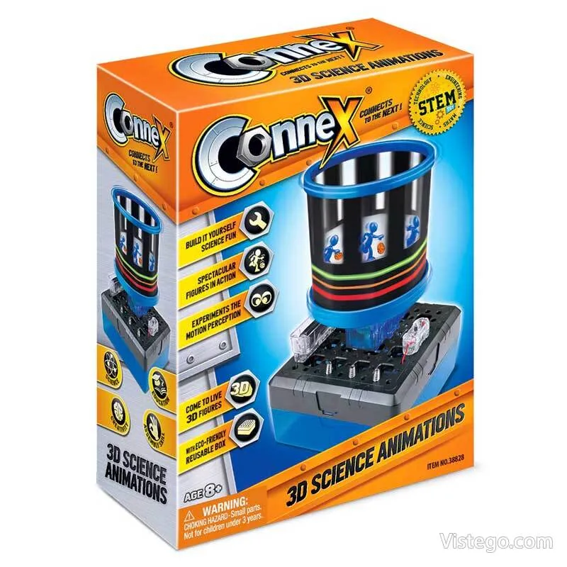 Комплектът от Connex е насочен към 3D моделиране и анимация, като ви въвежда в начина, по който се създават илюзии за движение. Вместо да следвате готов „правилен“ отговор, тук подходът е експериментален: подреждате 3D фигурките по специален начин, наблюдавате ефекта и след това сменяте местата им, за да видите как се променя възприятието. Така се усвояват базови техники за анимация и се разбира принципът на визуалното възприятие.