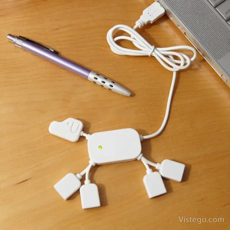 USB разклонител с форма на куче за подредено бюро и удобни връзки. Подходящ за мишка, камера и други USB устройства, без драйвери.
